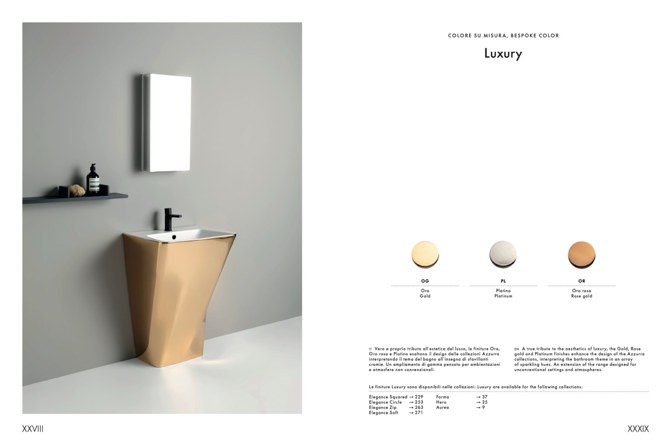 Le finiture Luxury sono disponibili nelle collezioni: Luxury are available for the following collections: