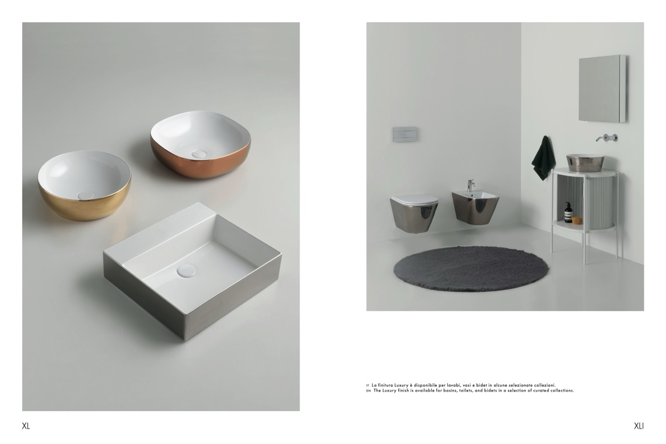 La finitura Luxury è disponibile per lavabi, vasi e bidet in alcune selezionate collezioni.