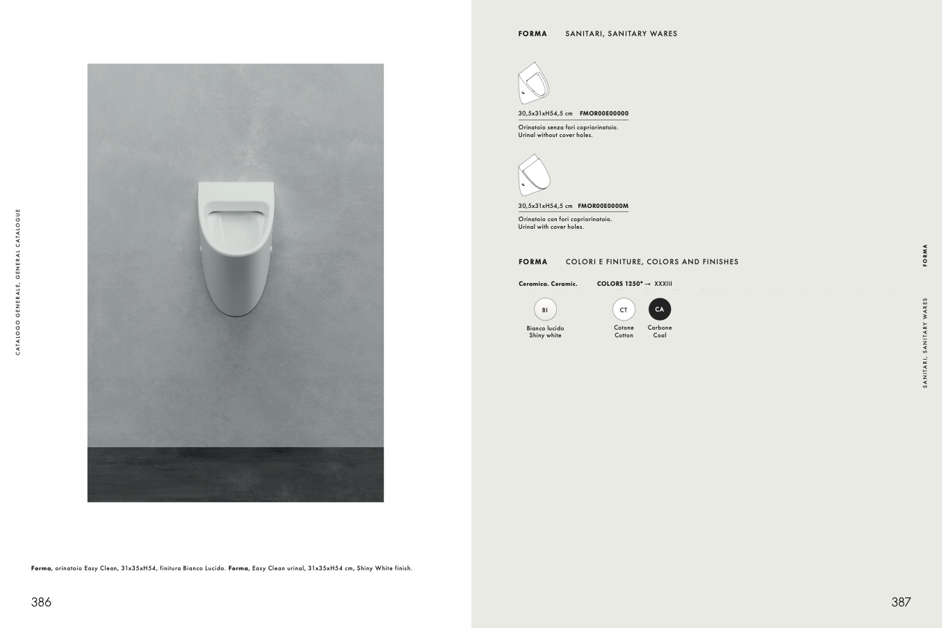 Forma, orinatoio Easy Clean, 31x35xH54, finitura Bianco Lucido. Forma, Easy Clean urinal, 31x35xH54 cm, Shiny White finish.