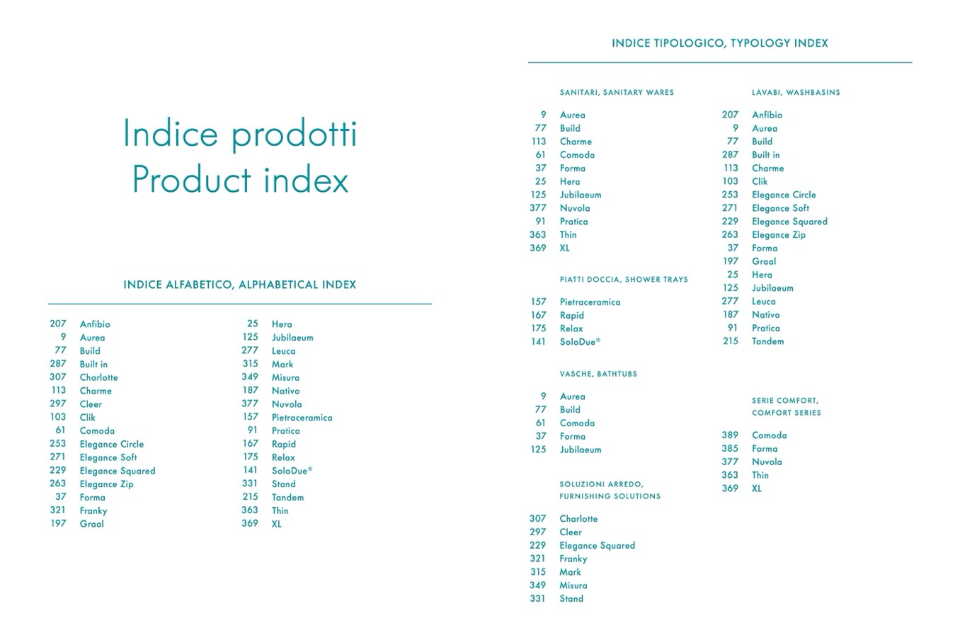 INDICE ALFABETICO, ALPHABETICAL INDEX