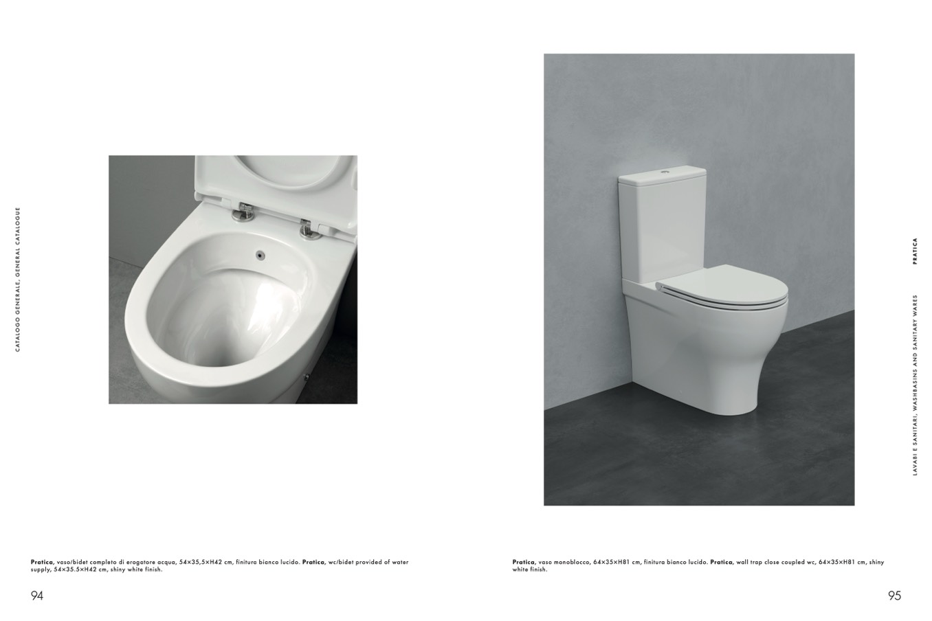 Pratica, vaso monoblocco, 64×35×H81 cm, finitura bianco lucido. Pratica, wall trap close coupled wc, 64×35×H81 cm, shiny