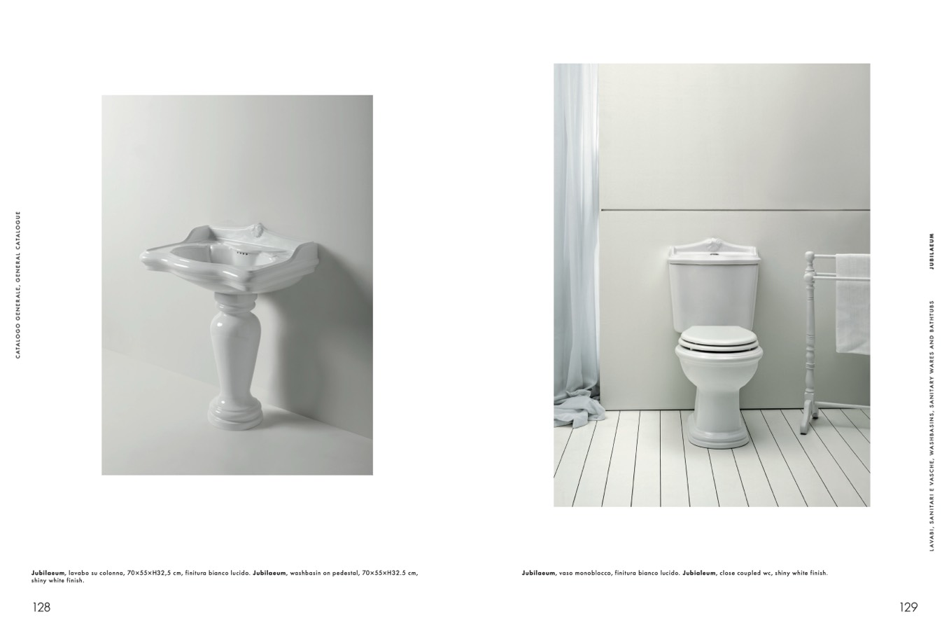 Jubilaeum, lavabo su colonna, 70×55×H32,5 cm, finitura bianco lucido. Jubilaeum, washbasin on pedestal, 70×55×H32.5 cm,