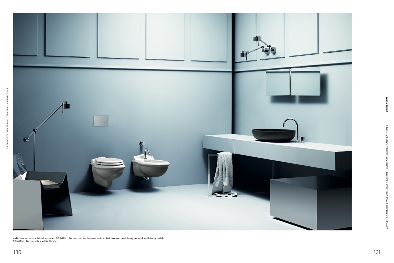 Jubilaeum, vaso e bidet sospeso, 55×40×H36 cm, finitura bianco lucido. Jubilaeum, wall-hung wc and wall-hung bidet,