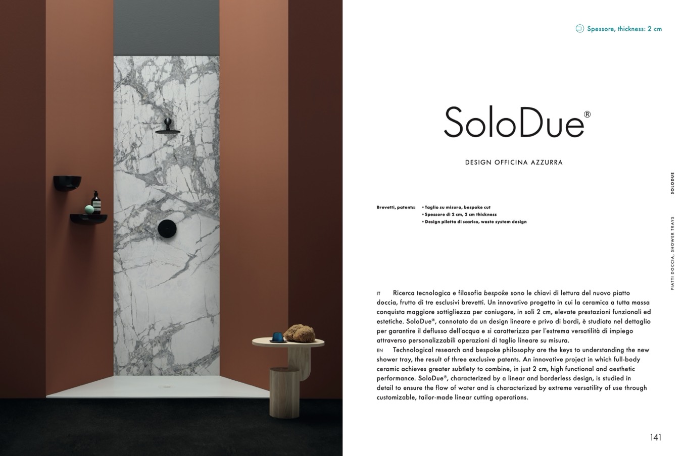 doccia, frutto di tre esclusivi brevetti. Un innovativo progetto in cui la ceramica a tutta massa