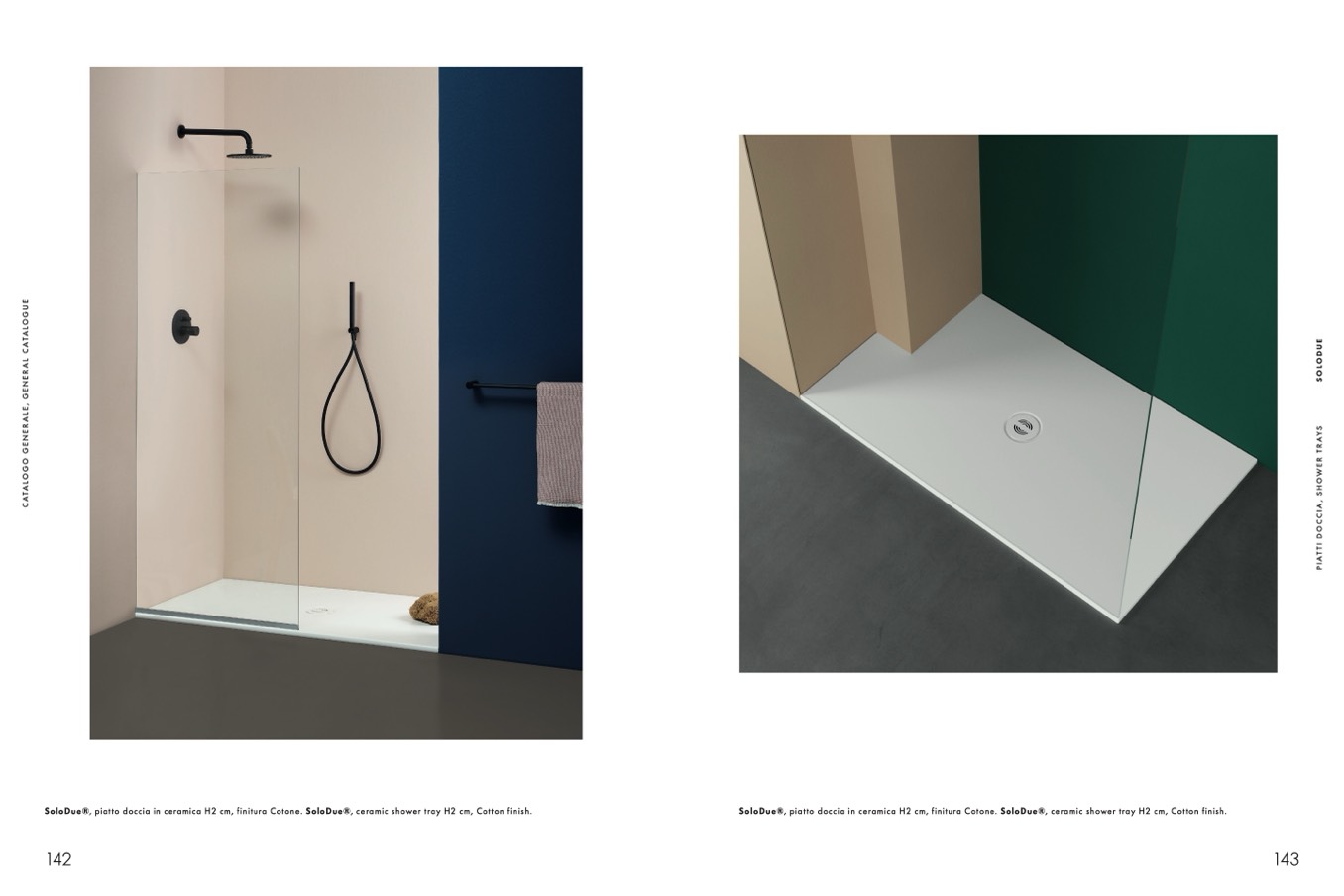 SoloDue®, piatto doccia in ceramica H2 cm, finitura Cotone. SoloDue®, ceramic shower tray H2 cm, Cotton finish.