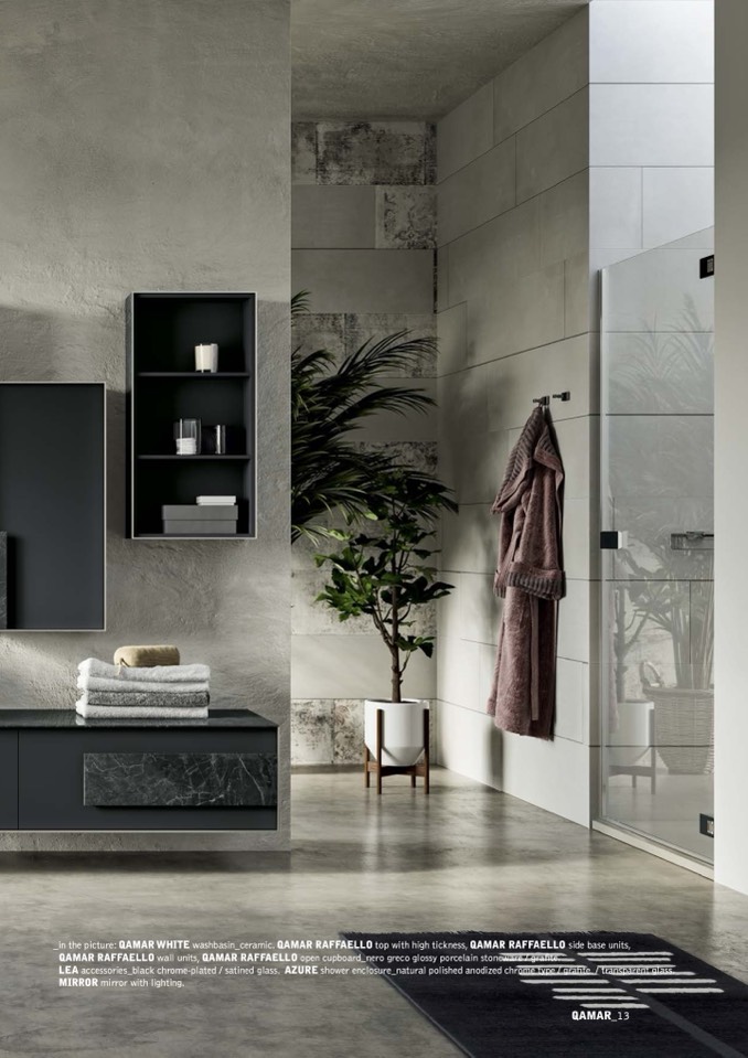 QAMAR RAFFAELLO wall units, QAMAR RAFFAELLO open cupboard_nero greco glossy porcelain stoneware / gra