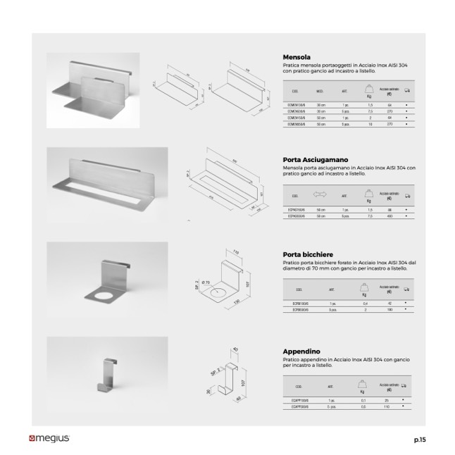 Pratica mensola portaoggetti in Acciaio Inox AISI 304