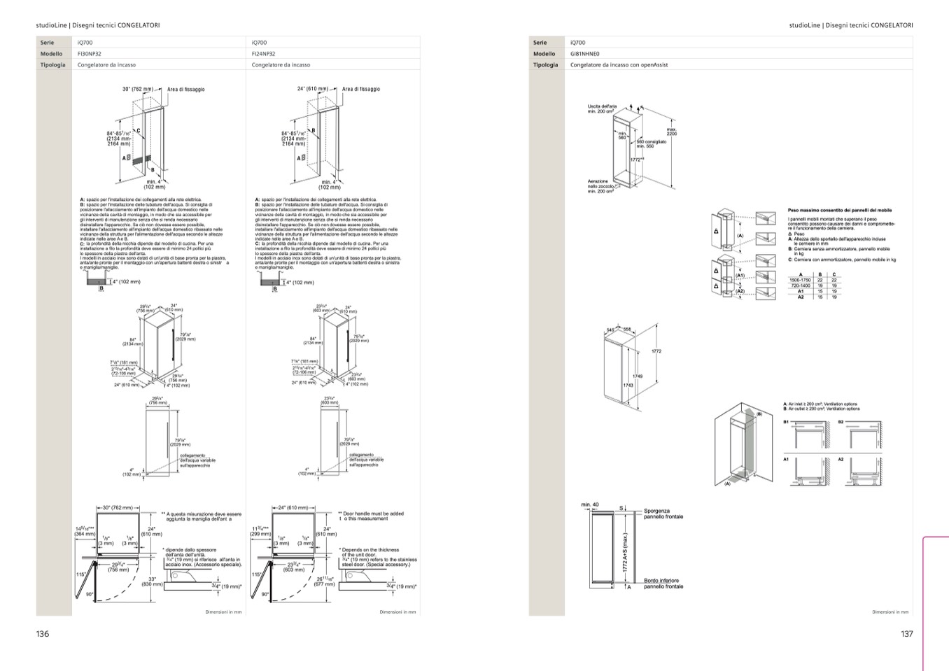 C: la profondità della nicchia dipende dal modello di cucina. Per una