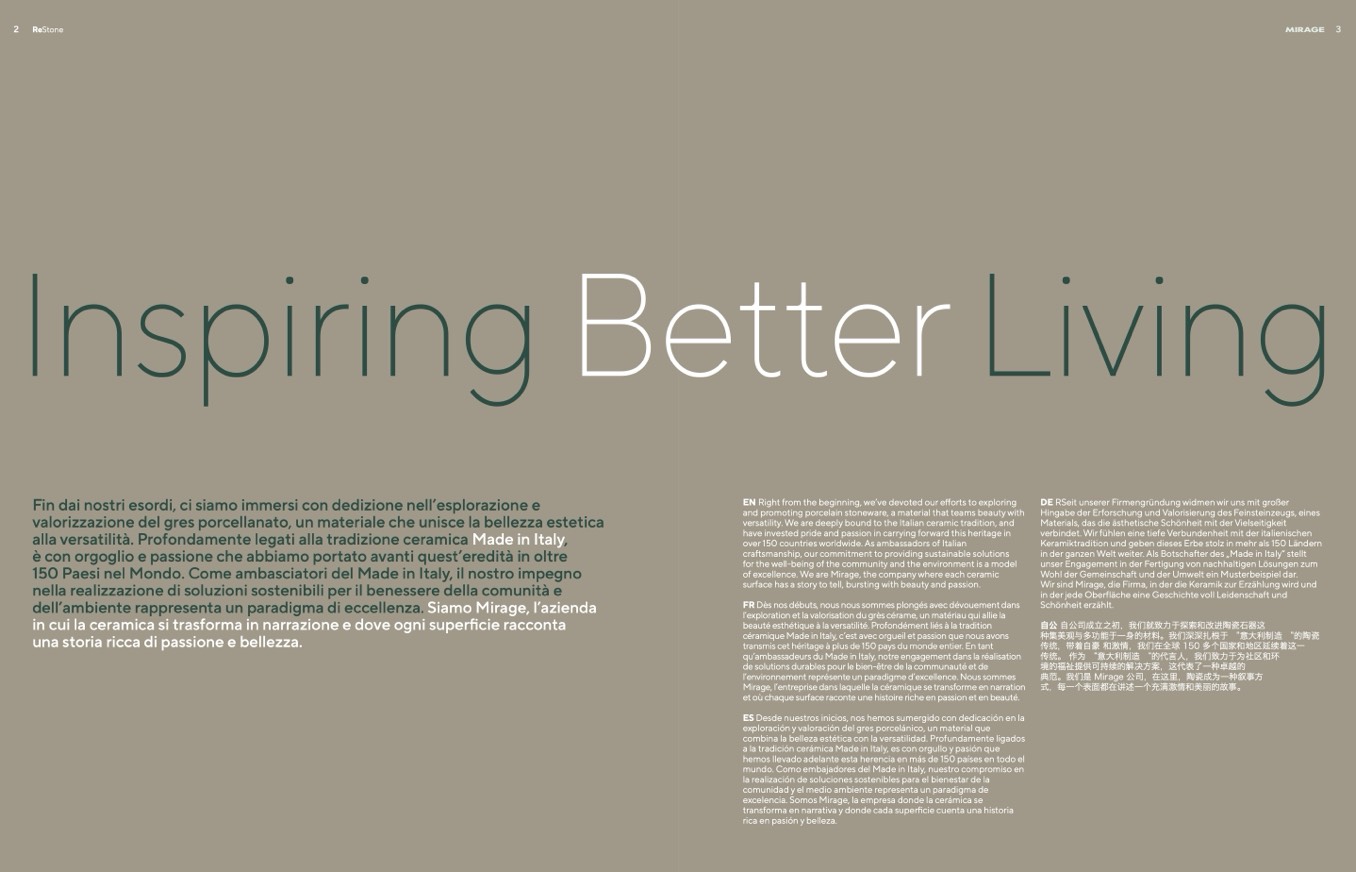 and promoting porcelain stoneware, a material that teams beauty with