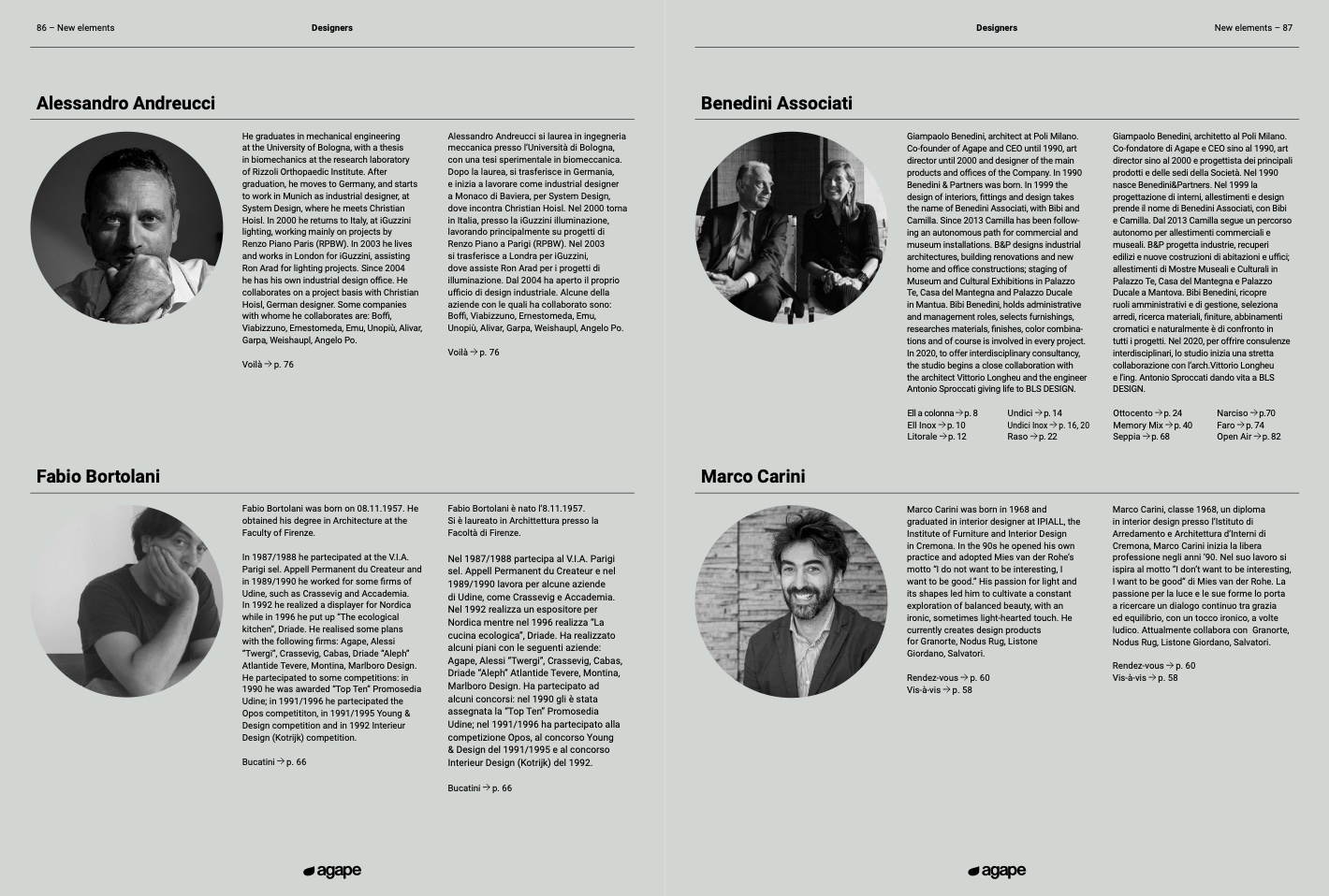 with the following firms: Agape, Alessi