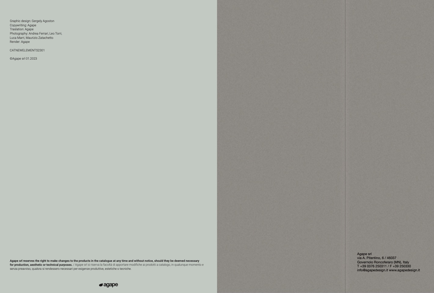 Agape srl reserves the right to make changes to the products in the catalogue at any time and without notice, should they be deemed necessary