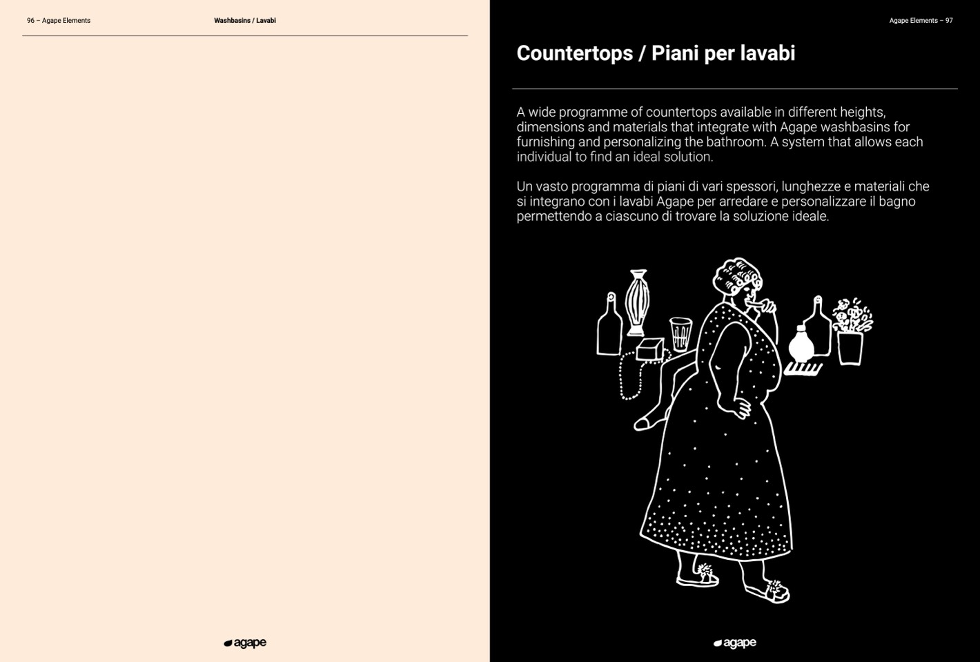 dimensions and materials that integrate with Agape washbasins for