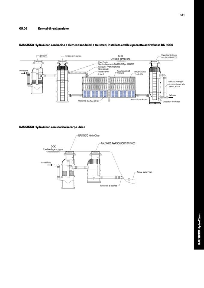RAUSIKKO HydroClean con bacino a elementi modulari a tre strati, installato a valle e pozzetto antireflusso DN 1000
