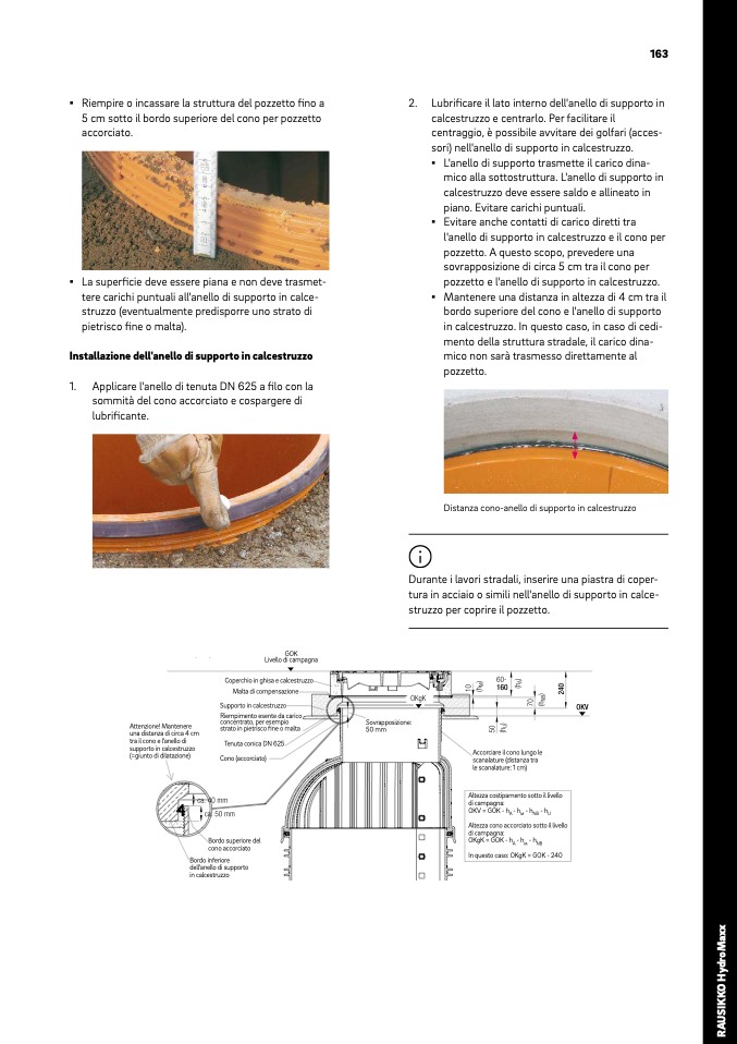 Installazione dell'anello di supporto in calcestruzzo