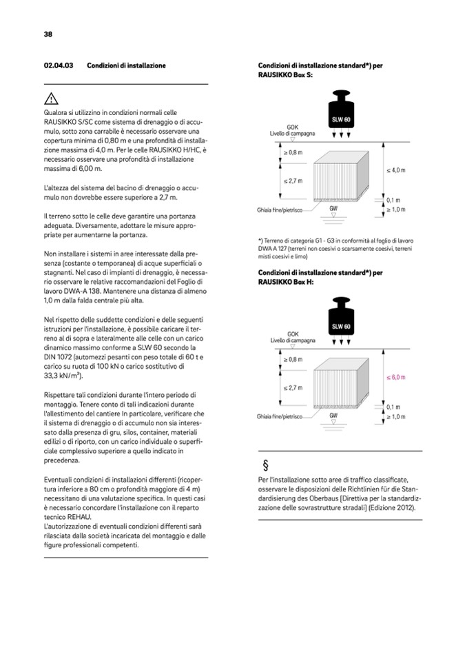 copertura minima di 0,80 m e una profondità di installa-