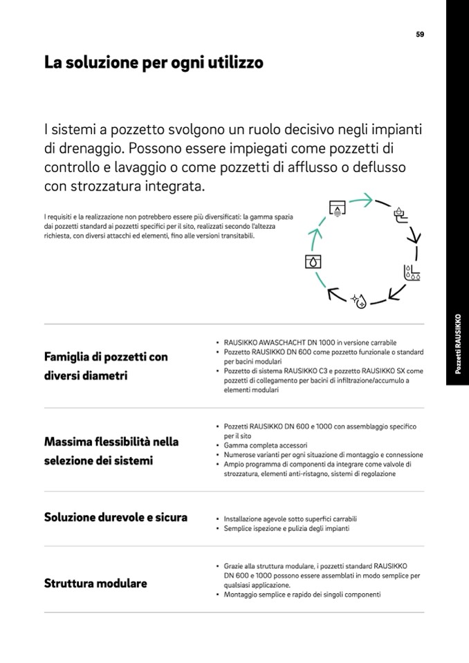 ▪ Grazie alla struttura modulare, i pozzetti standard RAUSIKKO