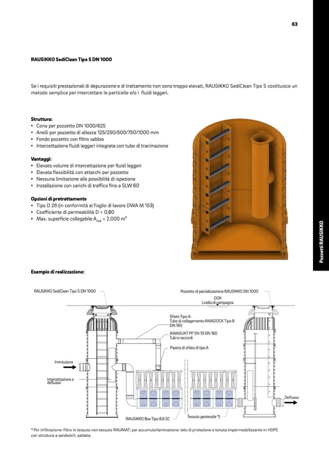 * Per infiltrazione: filtro in tessuto non tessuto RAUMAT; per accumulo/laminazione: telo di protezione e tenuta impermeabilizzante in HDPE