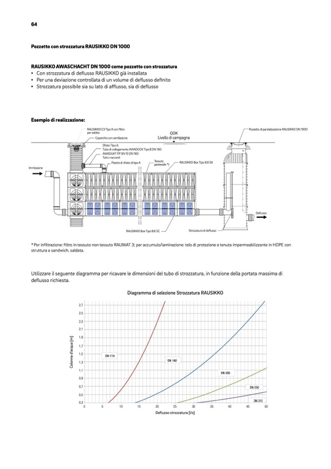 * Per infiltrazione: filtro in tessuto non tessuto RAUMAT 3; per accumulo/laminazione: telo di protezione e tenuta impermeabilizzante in HDPE con