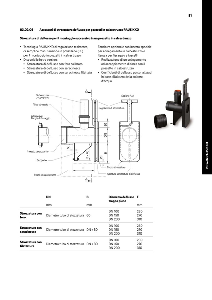Accessori di strozzatura deflusso per pozzetti in calcestruzzo RAUSIKKO