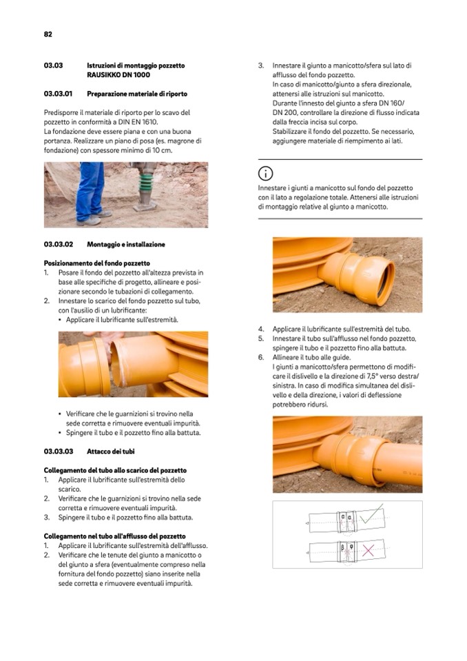 Innestare i giunti a manicotto sul fondo del pozzetto
