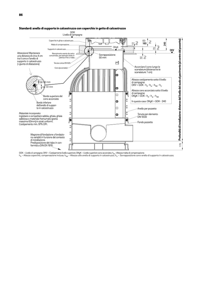GOK – Livello di campagna; OKV – Costipamento livello superiore; OKgK – Livello superiore cono accorciato; h
