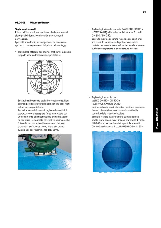 I pozzetti sono forniti senza aperture. Se necessario,