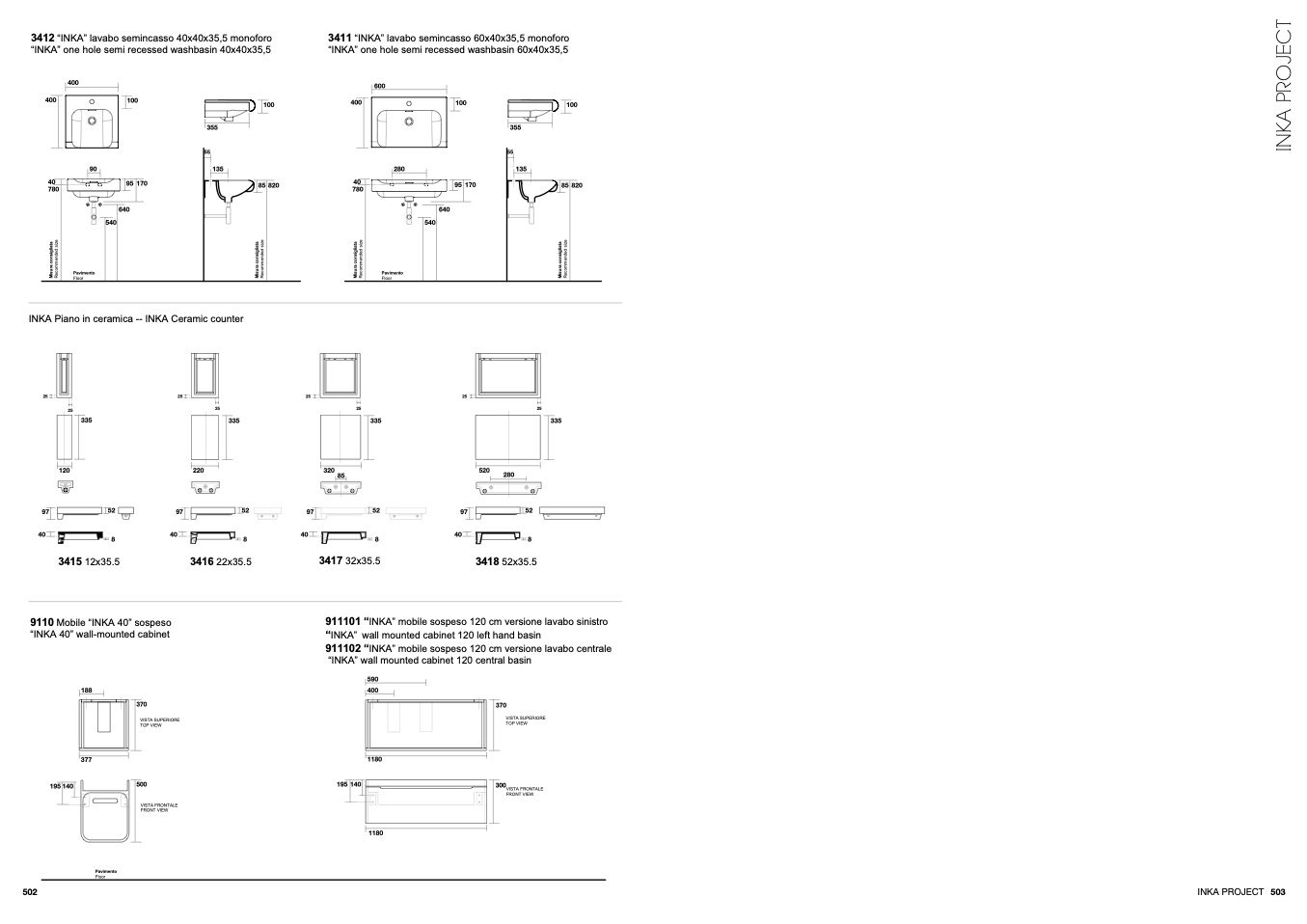 “INKA” one hole semi recessed washbasin 40x40x35,5