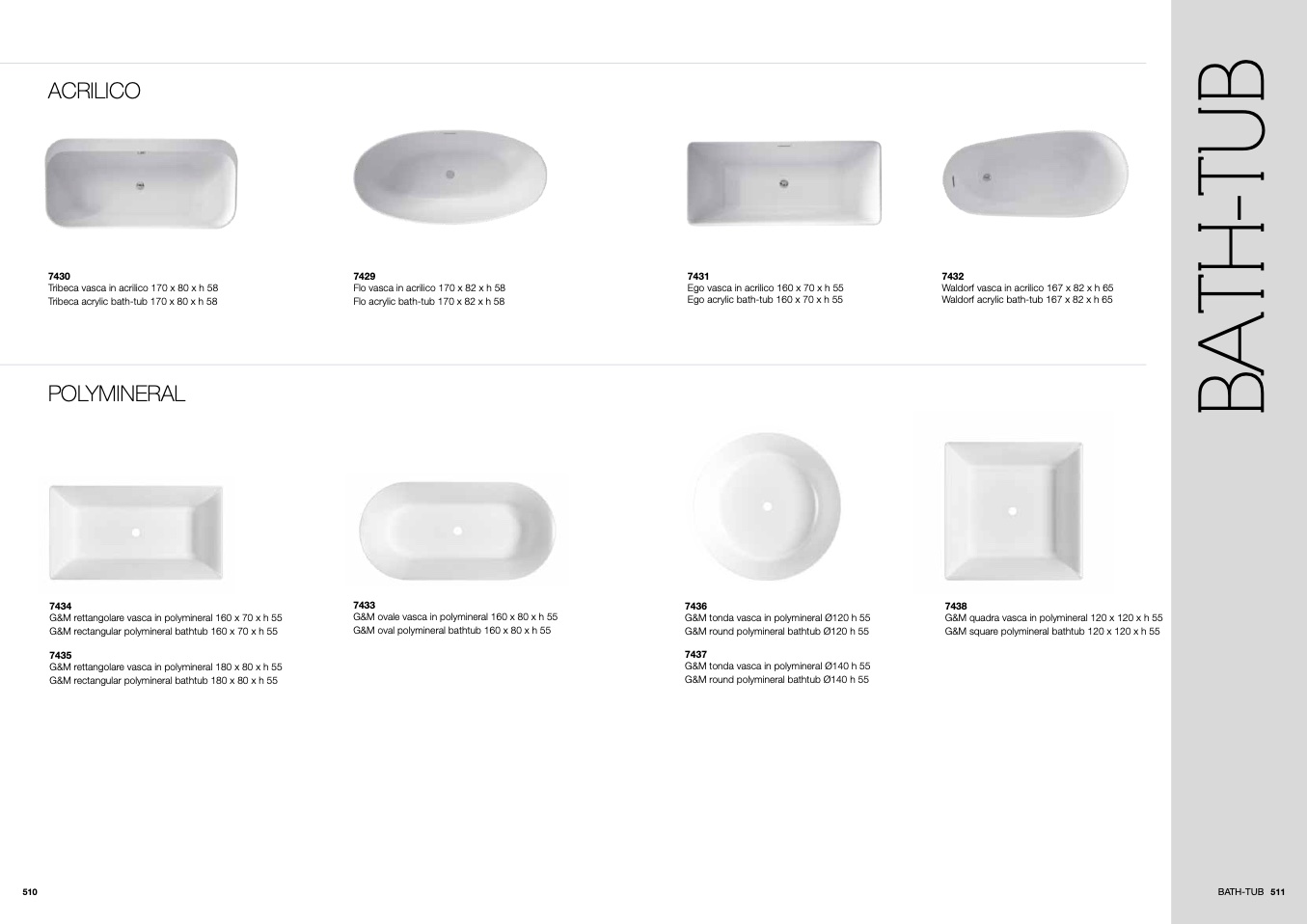 G&M rectangular polymineral bathtub 180 x 80 x h 55