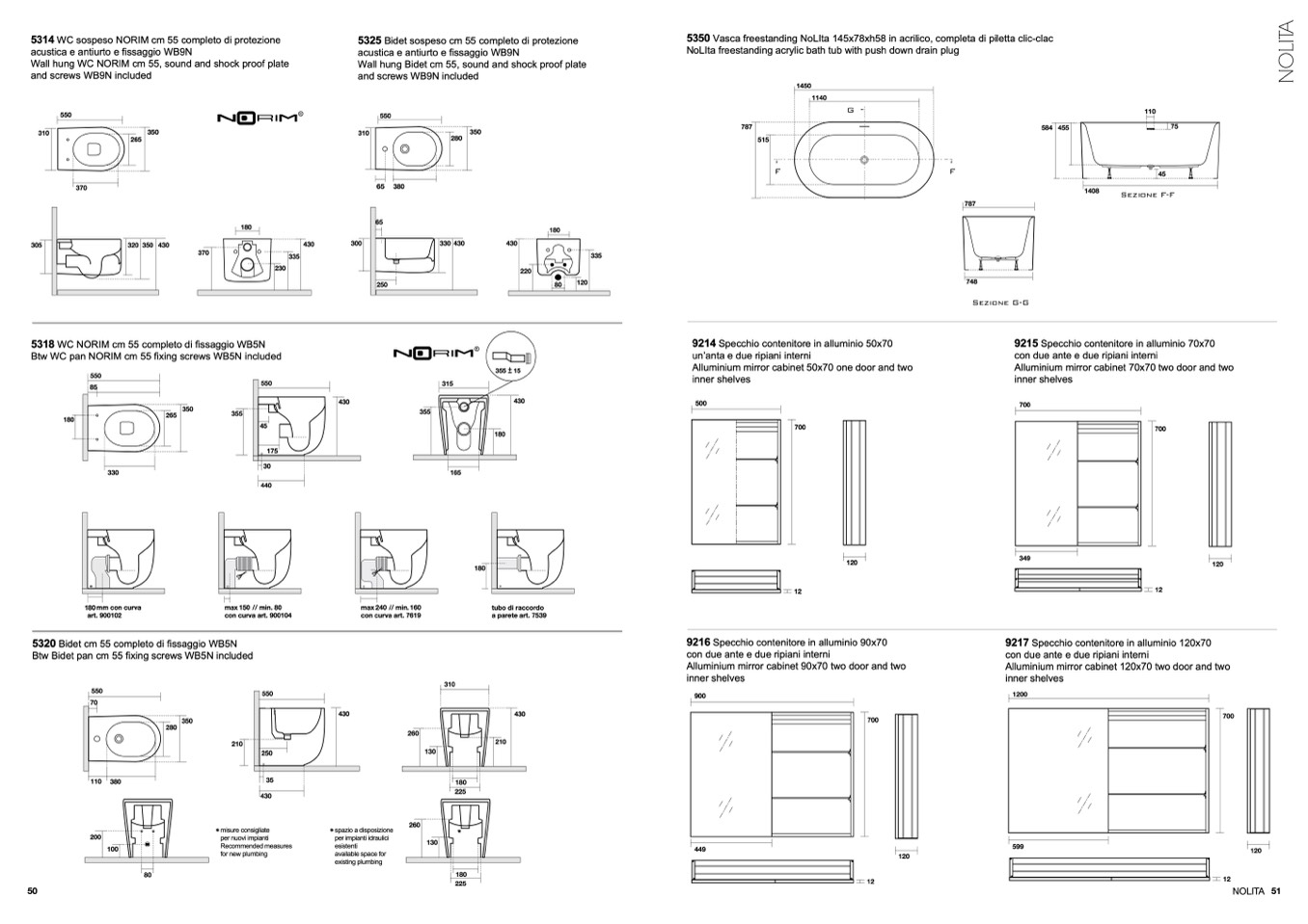 Wall hung WC NORIM cm 55, sound and shock proof plate
