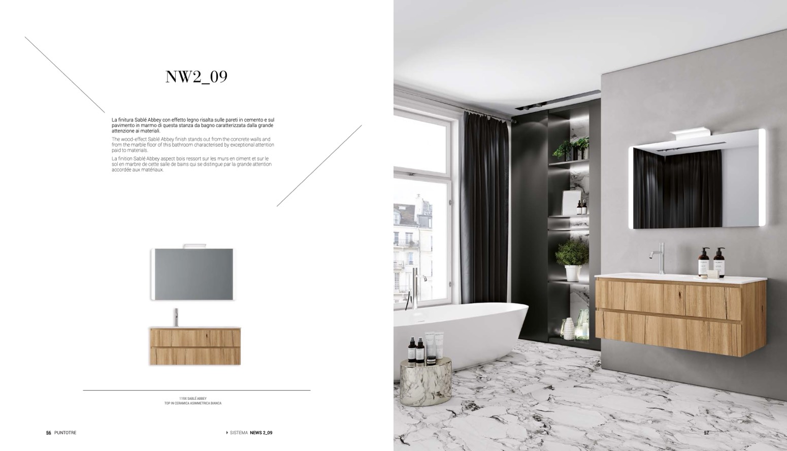 La finitura Sablé Abbey con effetto legno risalta sulle pareti in cemento e sul