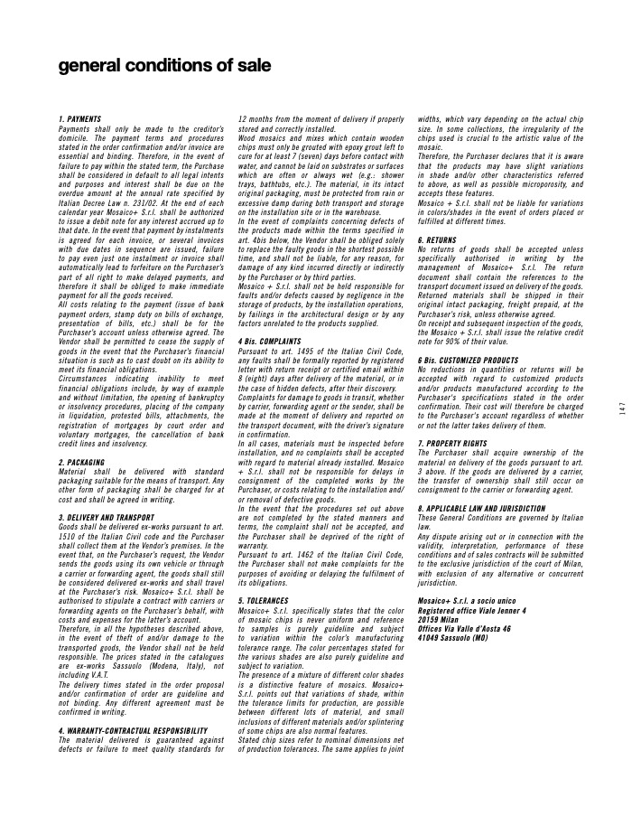 at the Purchaser’s risk. Mosaico+ S.r.l. shall be