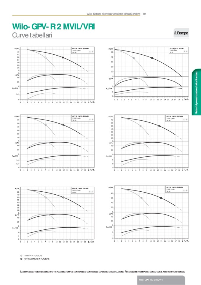 E CURVE CARATTERISTICHE SONO RIFERITE ALLE SOLE POMPE E NON TENGONO CONTO DELLE CONDIZIONI DI INSTALLAZIONE