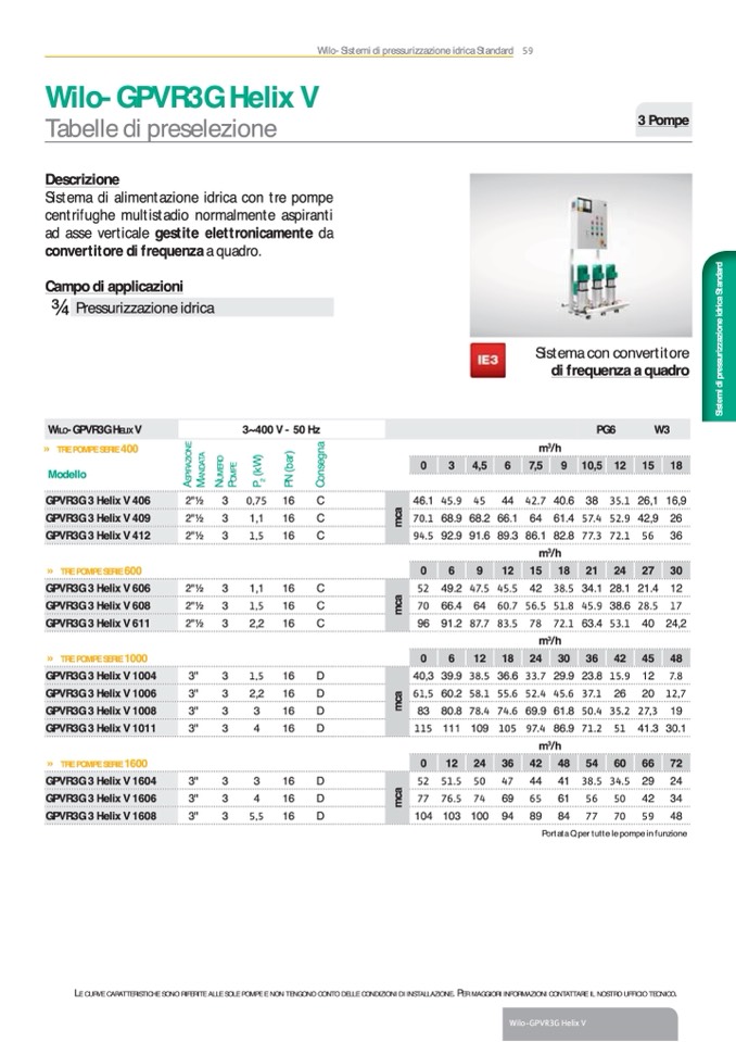 E CURVE CARATTERISTICHE SONO RIFERITE ALLE SOLE POMPE E NON TENGONO CONTO DELLE CONDIZIONI DI INSTALLAZIONE