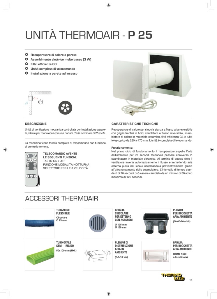te, ideale per monolocali con una portata d’aria nominale di 25 mc/h.