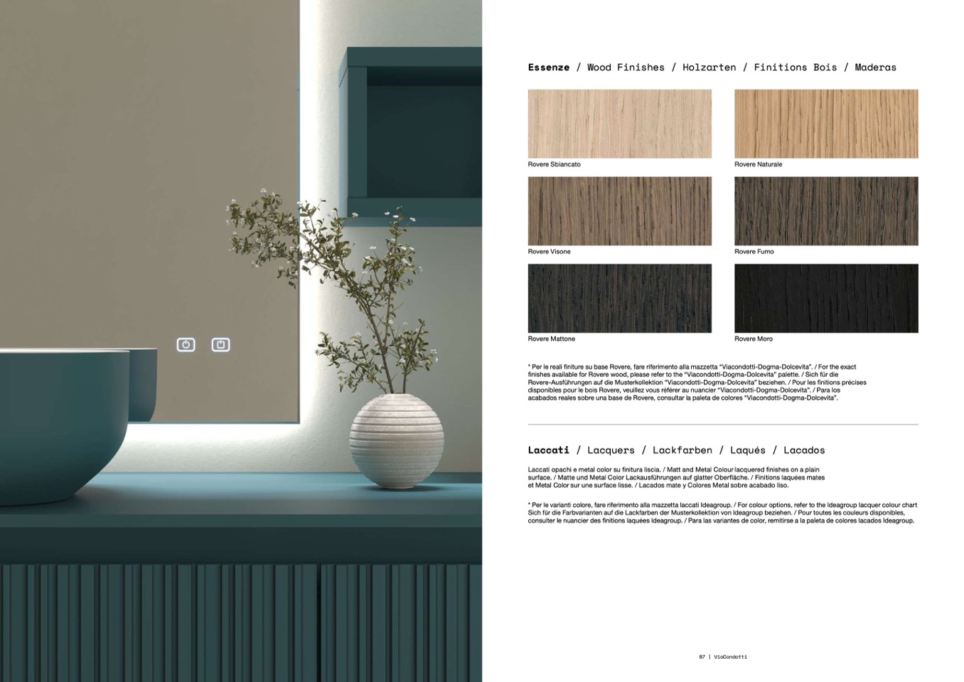 acabados reales sobre una base de Rovere, consultar la paleta de colores “Viacondotti-Dogma-Dolcevita”.