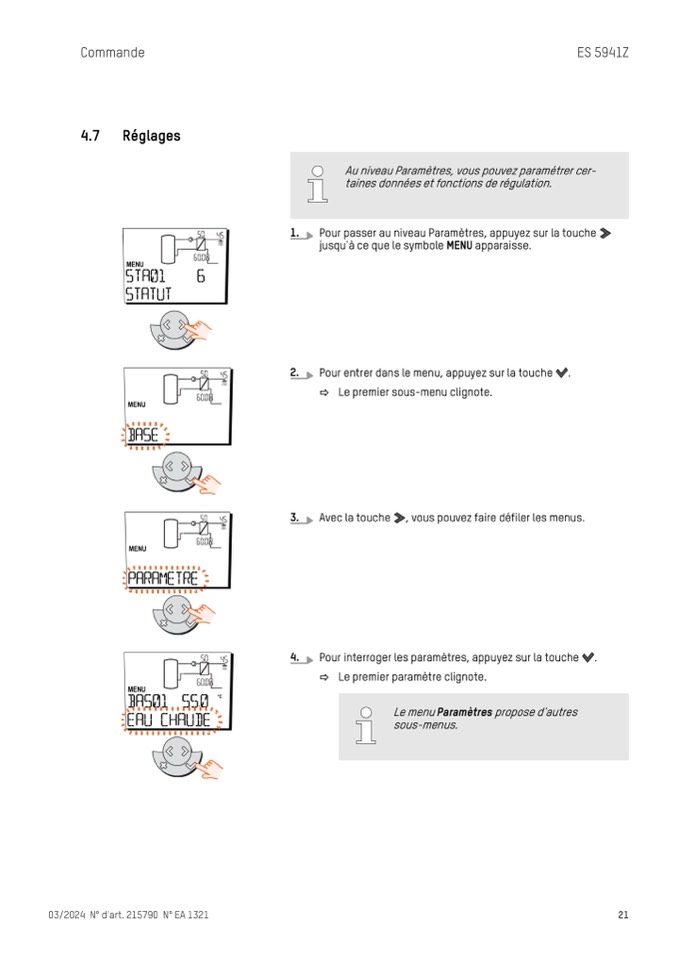 Pour passer au niveau Paramètres, appuyez sur la touche