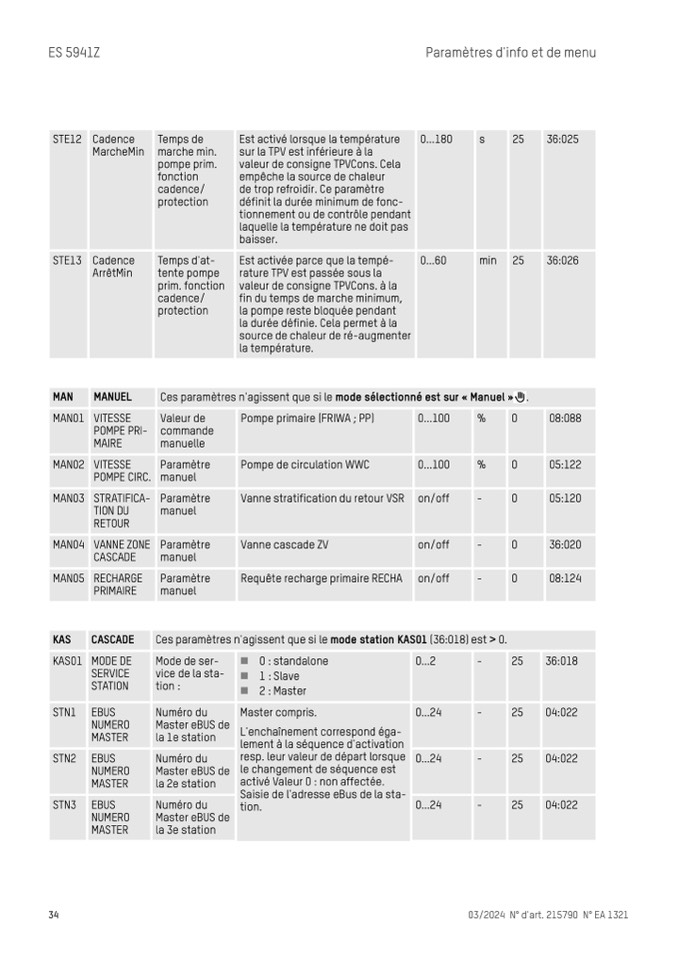 Ces paramètres n'agissent que si le mode station KAS01 (36:018) est > 0.