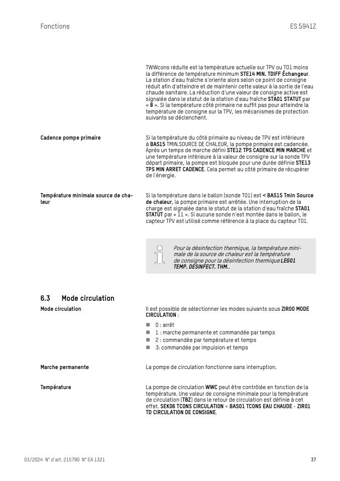 érature dans le ballon (sonde TO1) est < BAS15 Tmin Source