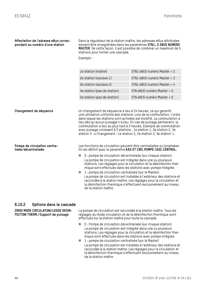 0 : Pompe de circulation décentralisée (sur chaque station).