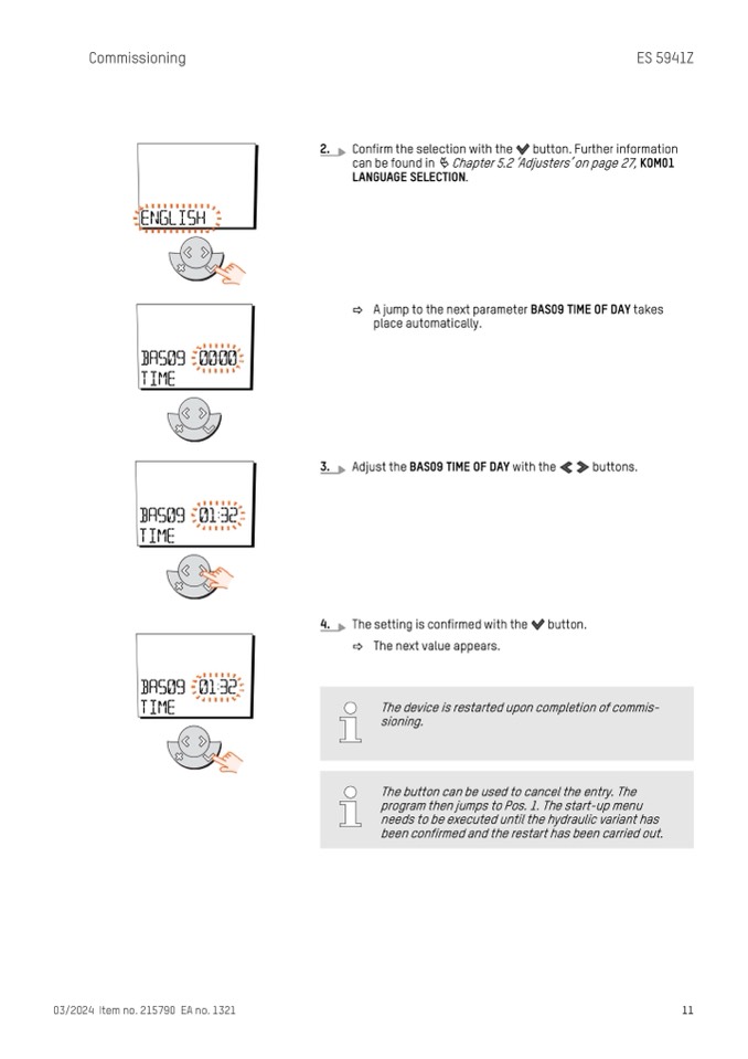 ð A jump to the next parameter BAS09 TIME OF DAY takes