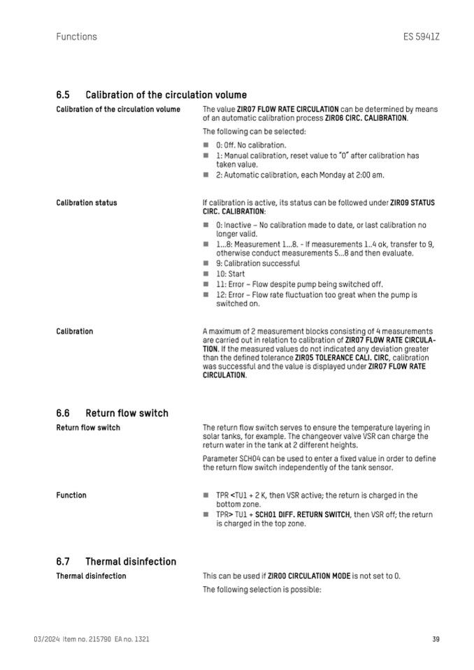 If calibration is active, its status can be followed under ZIR09 STATUS