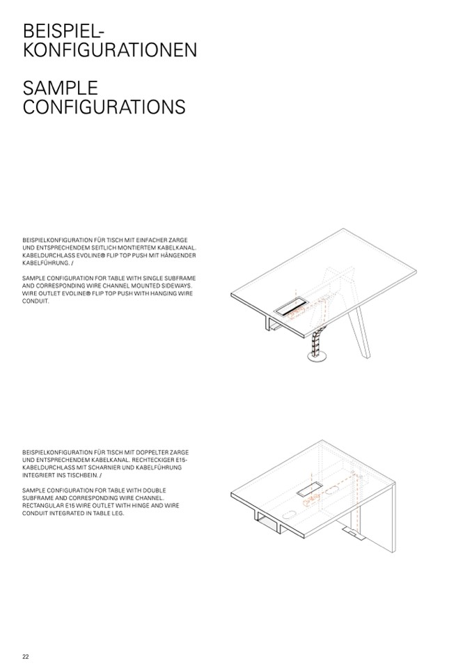 kabelDurcHlaSS mit ScHarnier unD kabelfüHrung