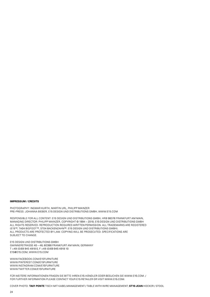 reSPonSible for all content: e15 DeSign unD DiStributionS gmbH, Hrb 98376 frankfurt am main,