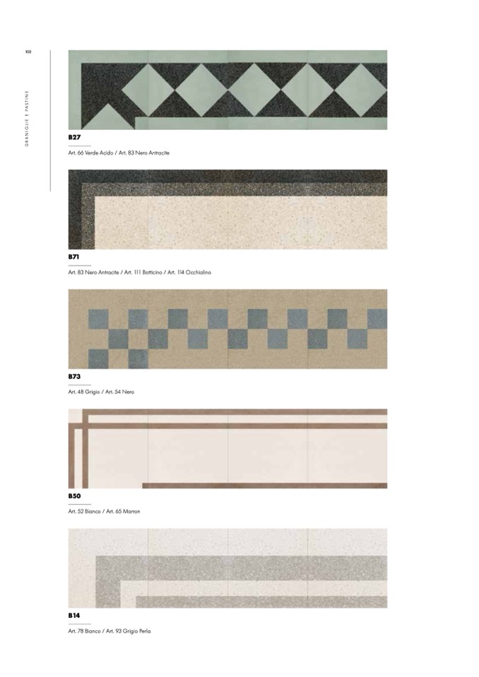 Art. 83 Nero Antracite / Art. 111 Botticino / Art. 114 Occhialino