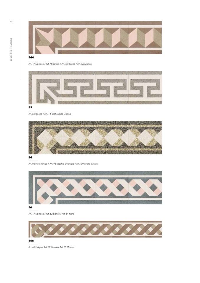 Art. 47 Salmone / Art. 48 Grigio / Art. 52 Bianco / Art. 65 Marron