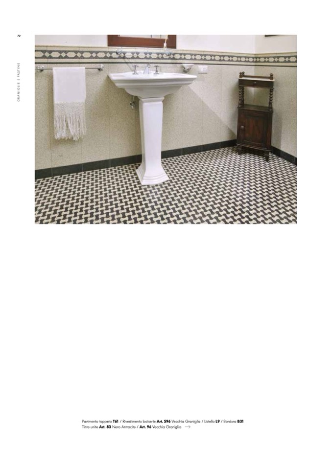 Pavimento tappeto T61 / Rivestimento boiserie Art. S96 Vecchia Graniglia / Listello L9 / Bordura B31