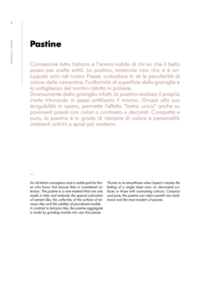 In contrast to terrazzo tiles, the pastine aggregate