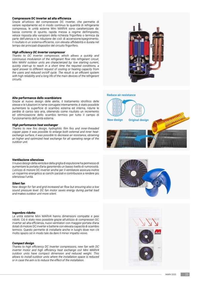 inverter motor and high efficiency heat exchange coil Mini MARV4