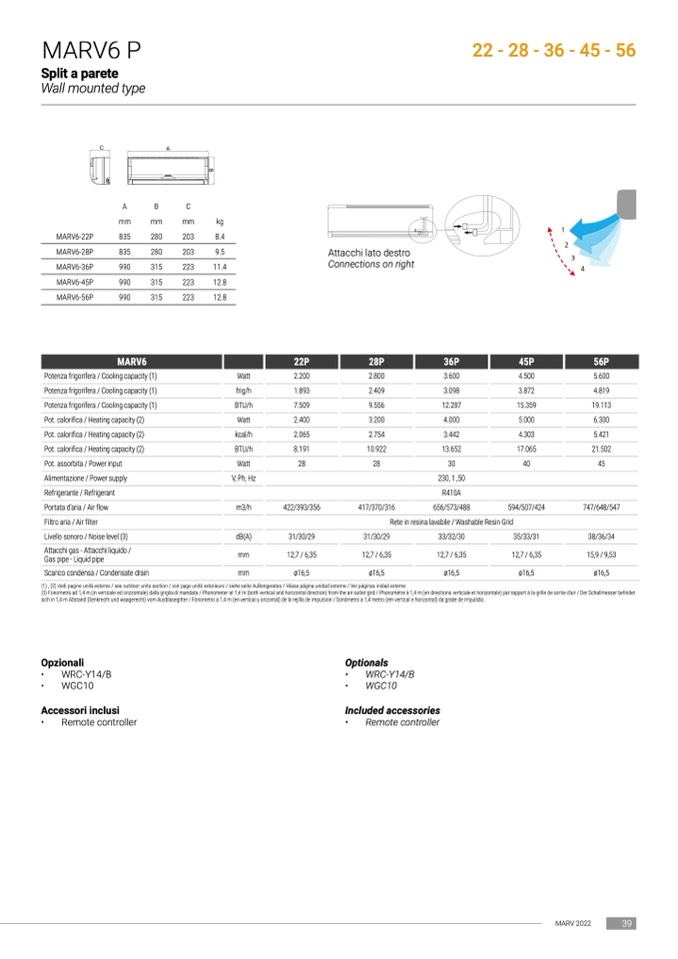 (1) , (2) Vedi pagine unità esterne / see outdoor units section / voir page unit