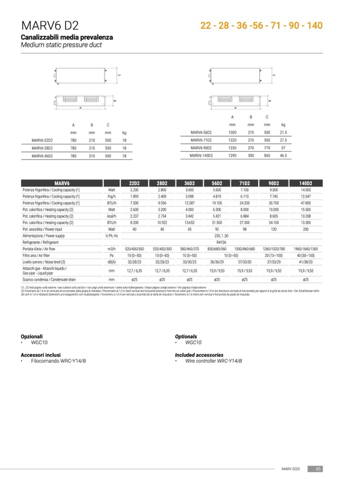 (1) , (2) Vedi pagine unità esterne / see outdoor units section / voir page unitè exterieure / siehe seite AuBengerates / Véase página unidad externe / Ver páginas inidad externe